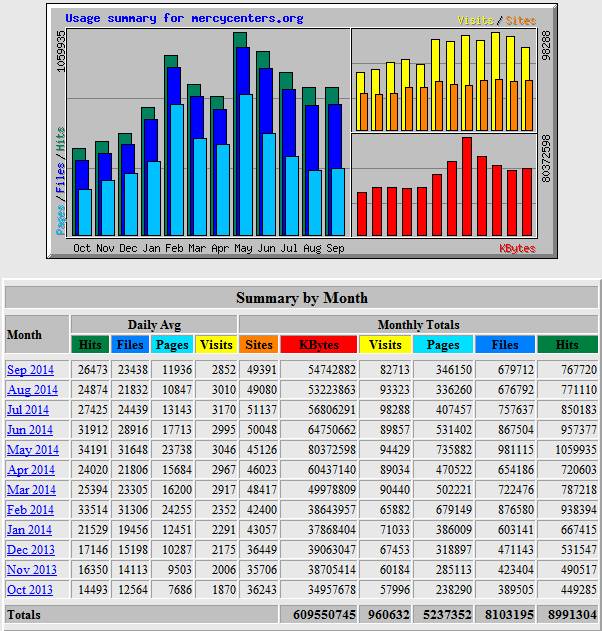 9/29/14 stats for website, MercyCenters.org - see Latest stats,